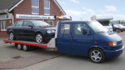 Transport und Überführung erledigen wir mit unserem VW-Servicebus und unserem neuwertigen Trailer bis 2,5 t Zuladung.